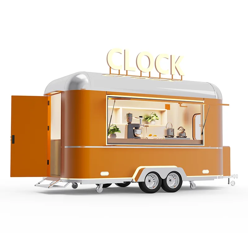 Das Produkt verfügt über einen schweren Stahlkonstruktionsrahmen und ist mit verstärkten Zugvorrichtungen und einem äußerst stabilen Aufhängungssystem ausgestattet. Es kann problemlos von Pickups oder Lastkraftwagen gezogen werden und eignet sich für verschiedene Straßen, beispielsweise Stadtstraßen, Veranstaltungsorte im Freien und Ausstellungsparks. Es ist bequem zu installieren und langlebig. Der Hauptkörper besteht aus lebensmittelechten Isolierungs- und Korrosionsschutzplatten, die im gesamten Bereich versiegelt, wasserdicht und rostfrei sind. Dabei werden Isolierung und Wärmedämmung sowie die Witterungsbeständigkeit im Außenbereich berücksichtigt. Das Erscheinungsbild unterstützt individuelle Marken, eingebettete Werbeleuchtkästen und klappbare Sonnenschirme, die nicht nur das Markenimage hervorheben, sondern sich auch an Outdoor-Service-Szenarien anpassen können. Der Innenraum besteht vollständig aus Edelstahl 304. Die Arbeitsplatten, Wände und Böden sind rutschfest, ölbeständig und leicht zu reinigen und zu desinfizieren und erfüllen damit vollständig die Hygienestandards der Gastronomie.