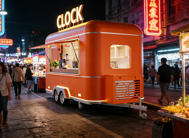 Die Kernkonfiguration erfüllt die Standardisierungsanforderungen von Franchise-Betrieben und unterstützt die modulare Anpassung von Kochsystemen. Spezielle Geräte wie Hähnchenfritteusen, Hurger-Maschinen, Kaffeemaschinen und Snack-Fritteusen können je nach Markenkategorie installiert werden und werden mit leistungsstarken Rauchabzugsreinigungssystemen kombiniert, um Rauch und Öl schnell zu verarbeiten und für dicht besiedelte Innen- und Außenszenarien geeignet zu sein. Kühlung und Lagerung sind mit eingebauten Dual-Temperatur-Kühlschränken und versiegelten Trockenwarenschränken ausgestattet, die die Frische und Lagersicherheit der Zutaten im Einklang mit den Rohstoffkontrollstandards der Franchise-Marken präzise steuern. Gleichzeitig ist es standardmäßig mit einem dreistufigen Reinigungs- und Desinfektionsbecken, gereinigtem Hochdruckwasser und einem versiegelten Abwasserkasten ausgestattet und bildet so einen vollständigen geschlossenen Reinigungskreislauf, um den Anforderungen der Catering-Überwachung an Orten gerecht zu werden. Das elektrische System ist mit einem intelligenten Verteilerkasten, einem leisen Generator und einer Notstromversorgung ausgestattet, die den gleichzeitigen Betrieb mehrerer Geräte unterstützt, und ist mit einer Markenbeleuchtung gepaart, um einen stabilen Betrieb über einen langen Zeitraum zu gewährleisten.
